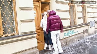 Sie saugt zwei Schwaenze leer und schlckt alles